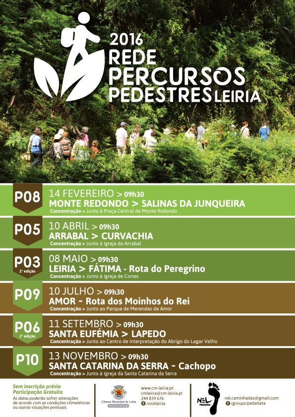 Para quaisquer informações relativas aos Percursos Pedestres poderá ser contactado o e-mail: cmleiria@cm-leiria.pt ou nel.caminhadas@gmail.com.