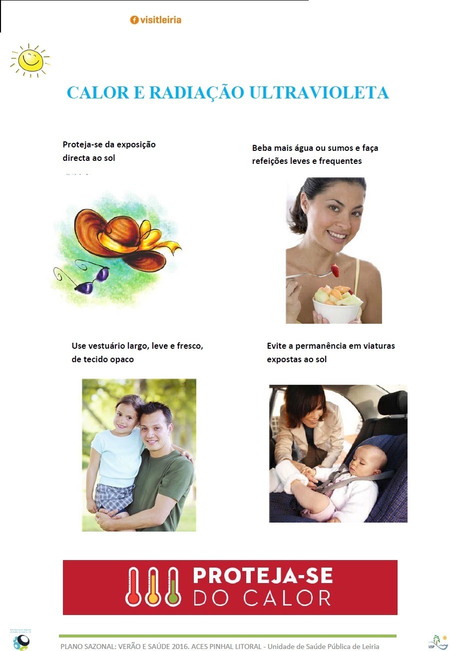 No âmbito do Plano Sazonal: Verão e saúde 2016, a Câmara Municipal de Leiria aconselha que sejam seguidas as recomendações do ACES Pinhal Litoral/Unidade de Saúde Pública e que são as seguintes: