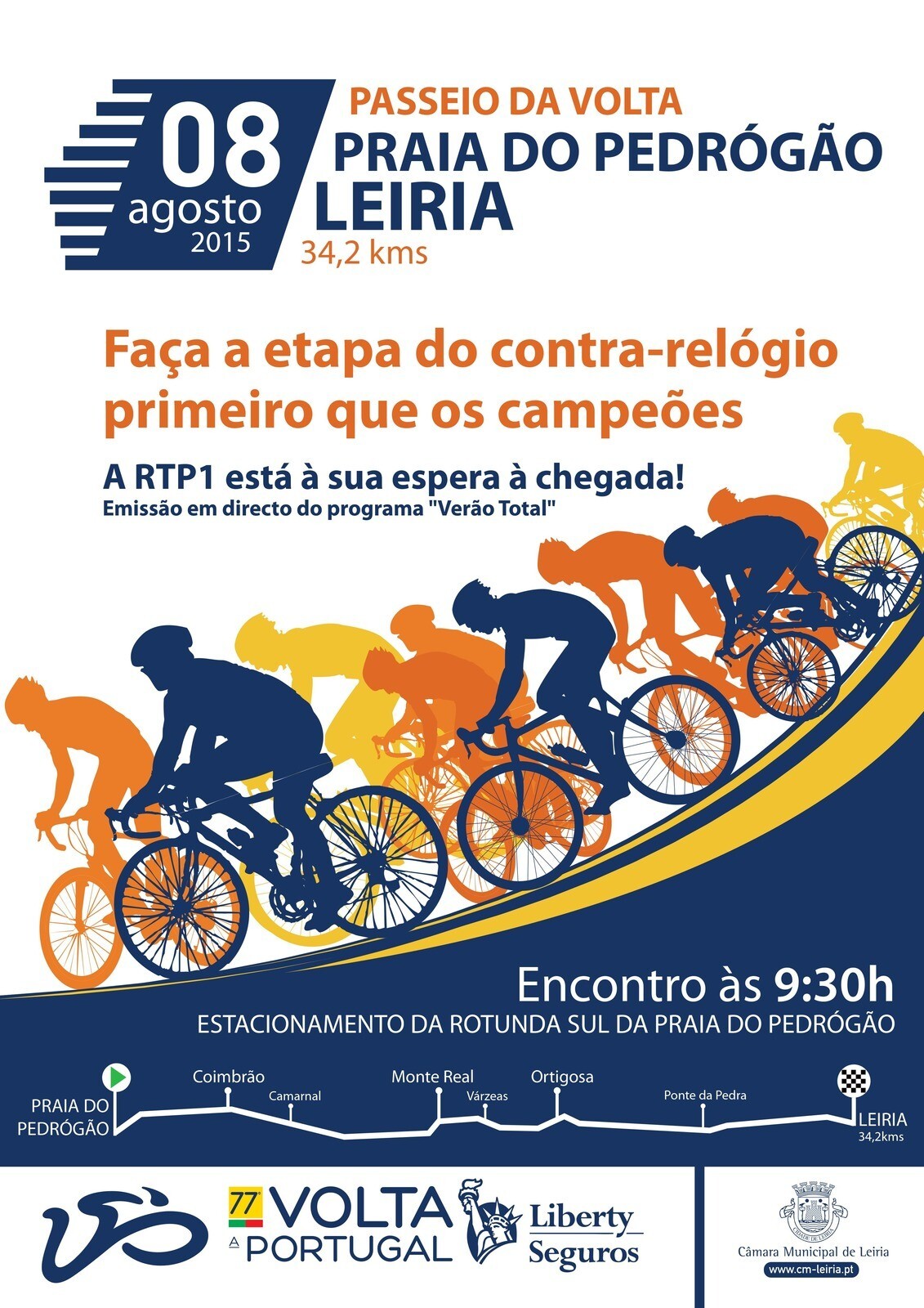 No sábado, dia 08 de agosto Leiria transforma-se no palco da 77ª Volta a Portugal em Bicicleta ao receber o contrarrelógio entre a Praia do Pedrogão e Leiria, numa distância de 34,2 Kms.