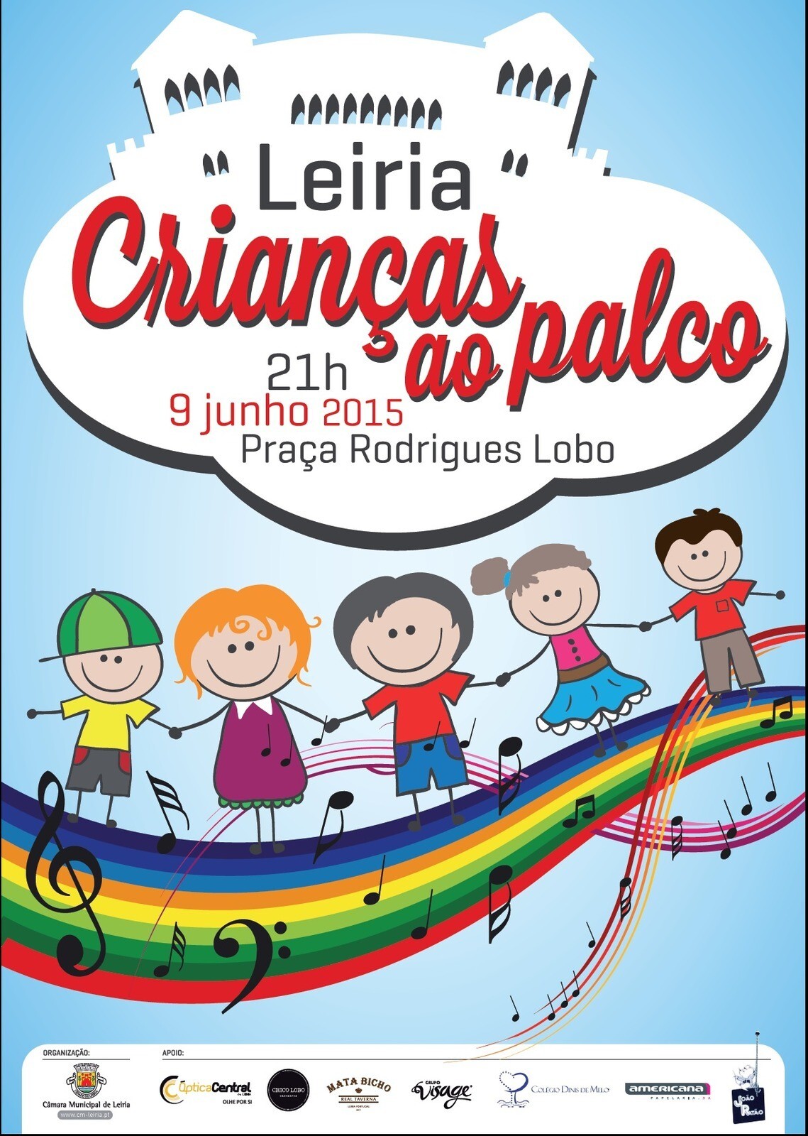 A Praça Rodrigues Lobo, em Leiria, vai receber na noite do dia 9 de junho, às 21 horas, o Espetáculo ao vivo "Crianças ao Palco", organizado pelo Município de Leiria.