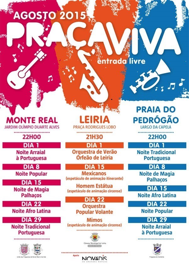 A “Praça Viva” tem entrada livre e é organizada pela Câmara Municipal de Leiria em colaboração com a Freguesia de Coimbrão e com a União de Freguesias de Monte Real e Carvide, contando também com o apoio da empresa Novadis.