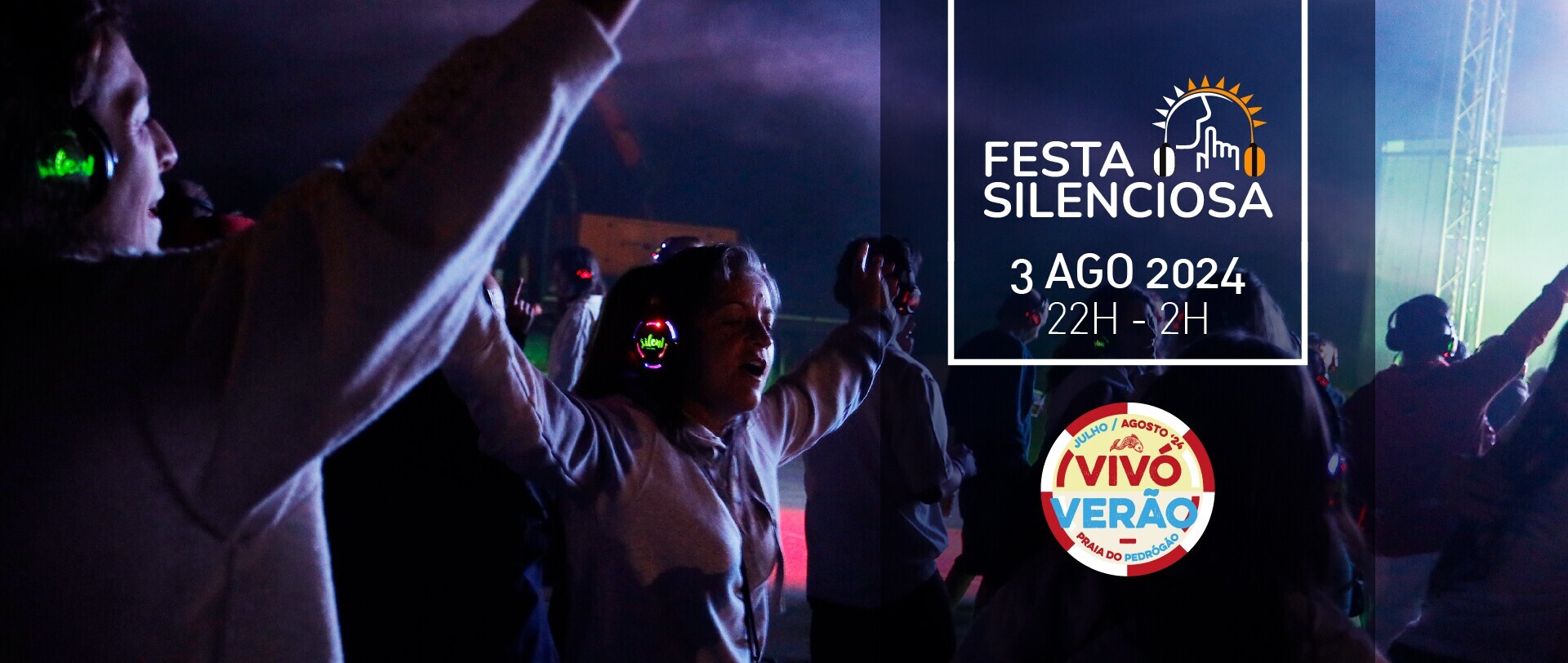 Entre as 22h e as 2h, a Rotunda Sul da Praia do Pedrógão volta a ser palco deste momento de diversão, em que a música apenas se ouve nos headphones luminosos, distribuídos pelos participantes.