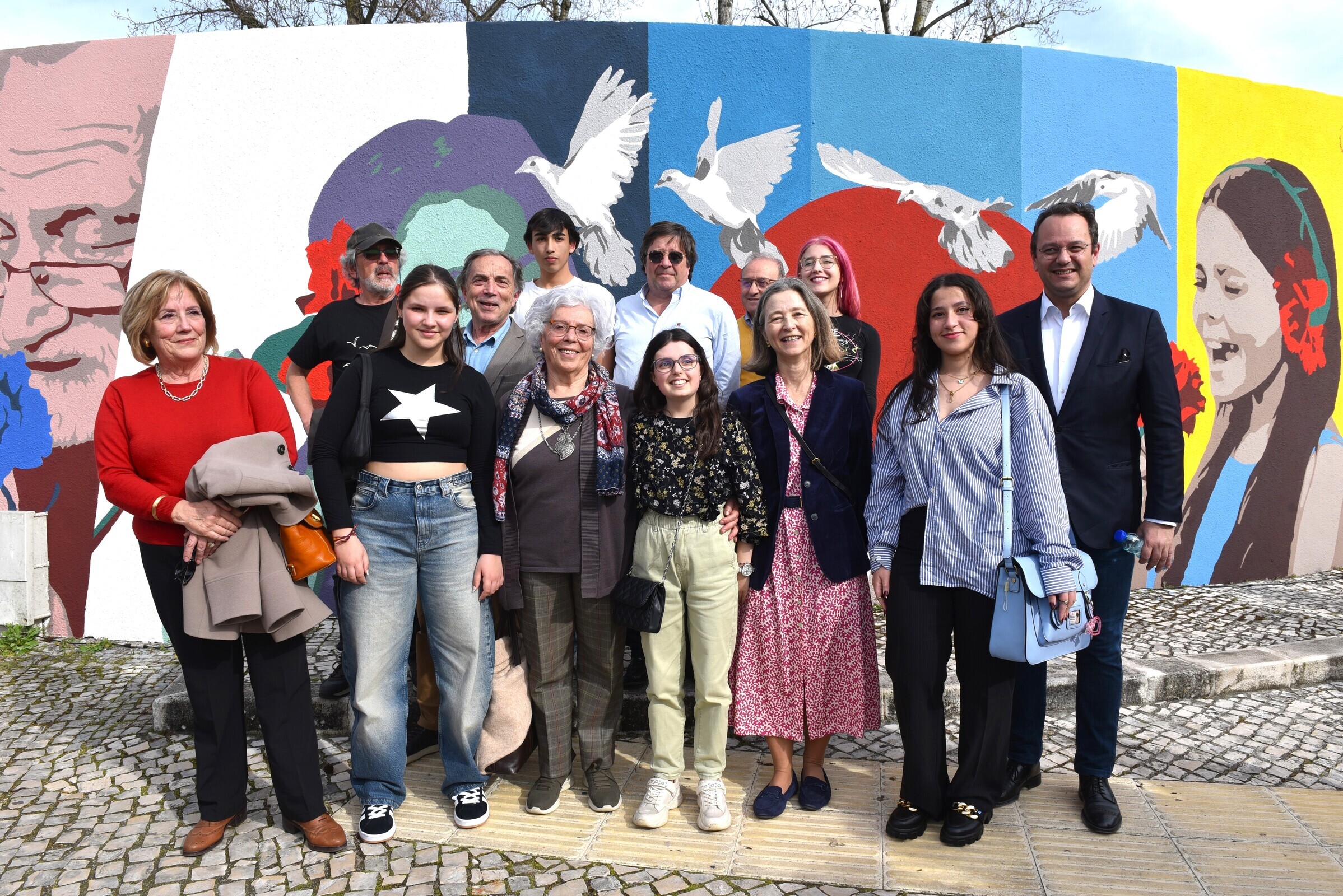 Projeto artístico intergeracional cria mural de abril em Leiria