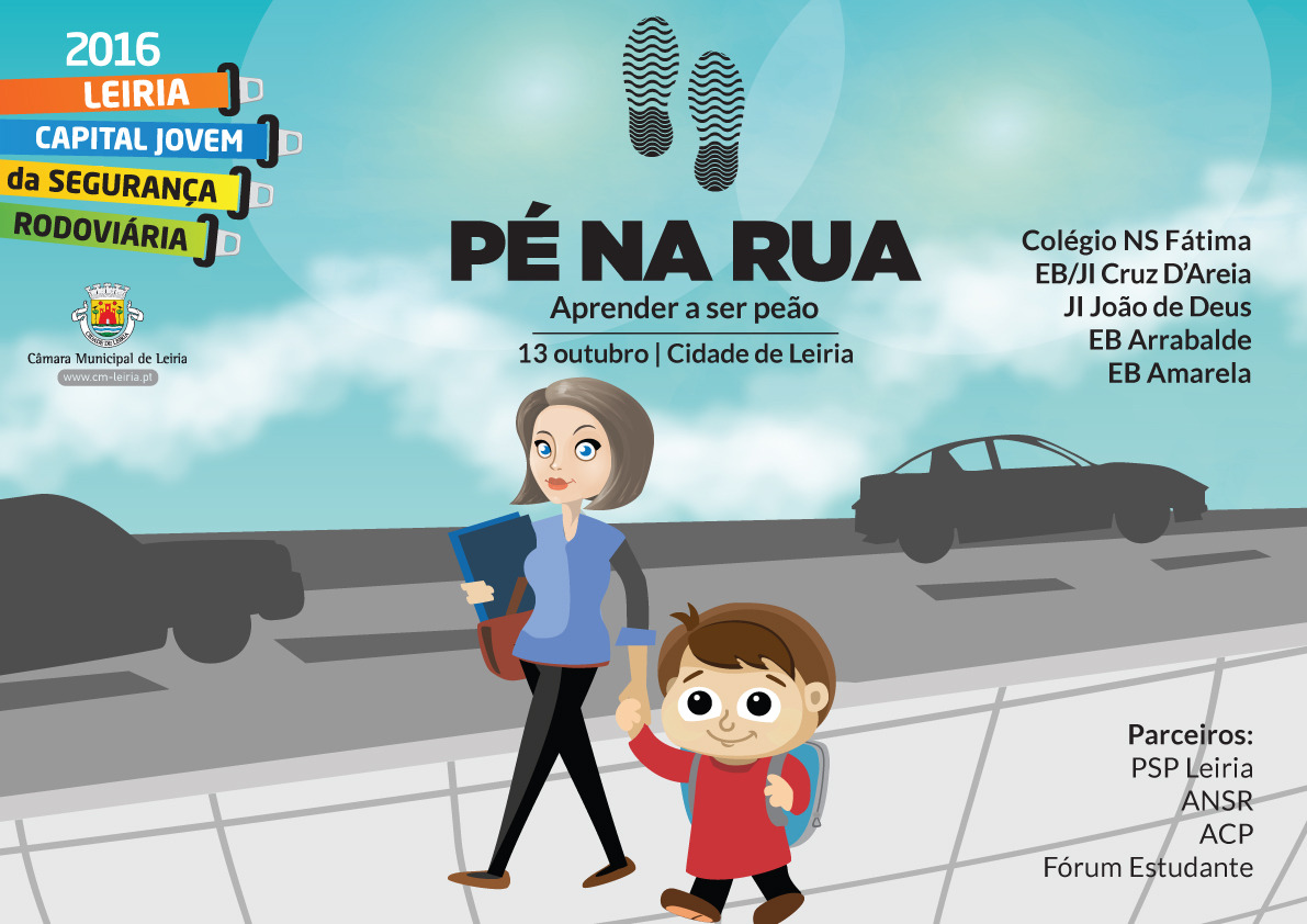O Município de Leiria vai lançar a ação "Pé na Rua - Aprender a Ser Peão", dirigida a alunos do 1.º ciclo e estabelecimentos do pré-escolar do concelho, um projeto de Educação e Segurança Rodoviária com o objetivo de ensinar as crianças a serem peões, através de exercícios práticos em plena rua.