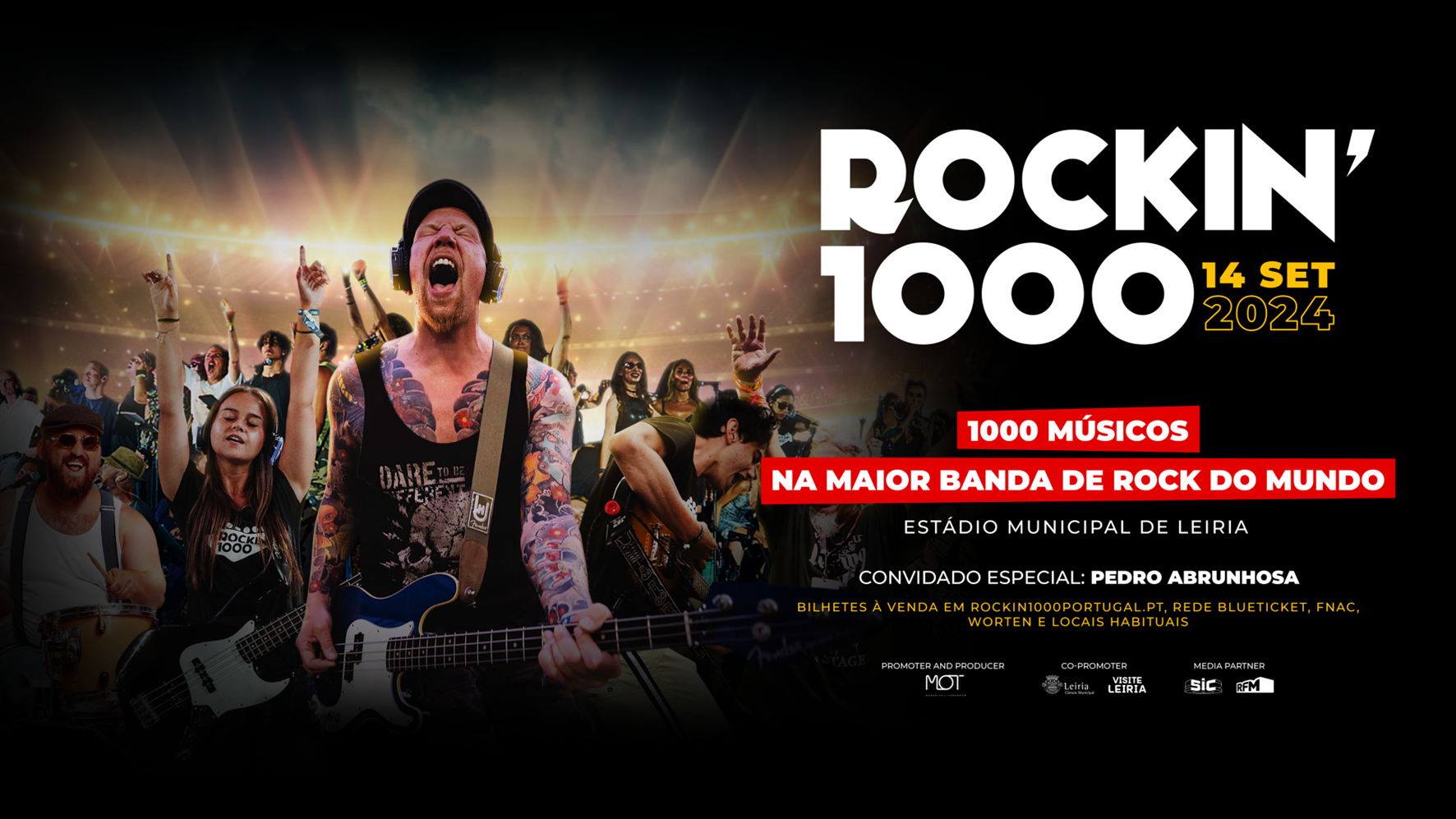 O fenómeno global Rockin'1000, famoso por reunir milhares de músicos amadores e profissionais para celebrar clássicos do rock, chega a Portugal pela primeira vez no dia 14 de setembro, no Estádio de Leiria, e promete uma experiência musical memorável à qual se junta agora Pedro Abrunhosa.