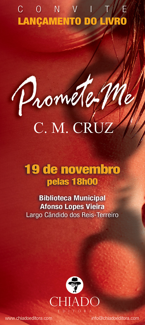 A autora C.M. Cruz vai apresentar sábado, dia 19 de novembro, às 18:00, na Biblioteca Municipal de Leiria, o seu romance “Promete-me”, editado pela Chiado Editora.