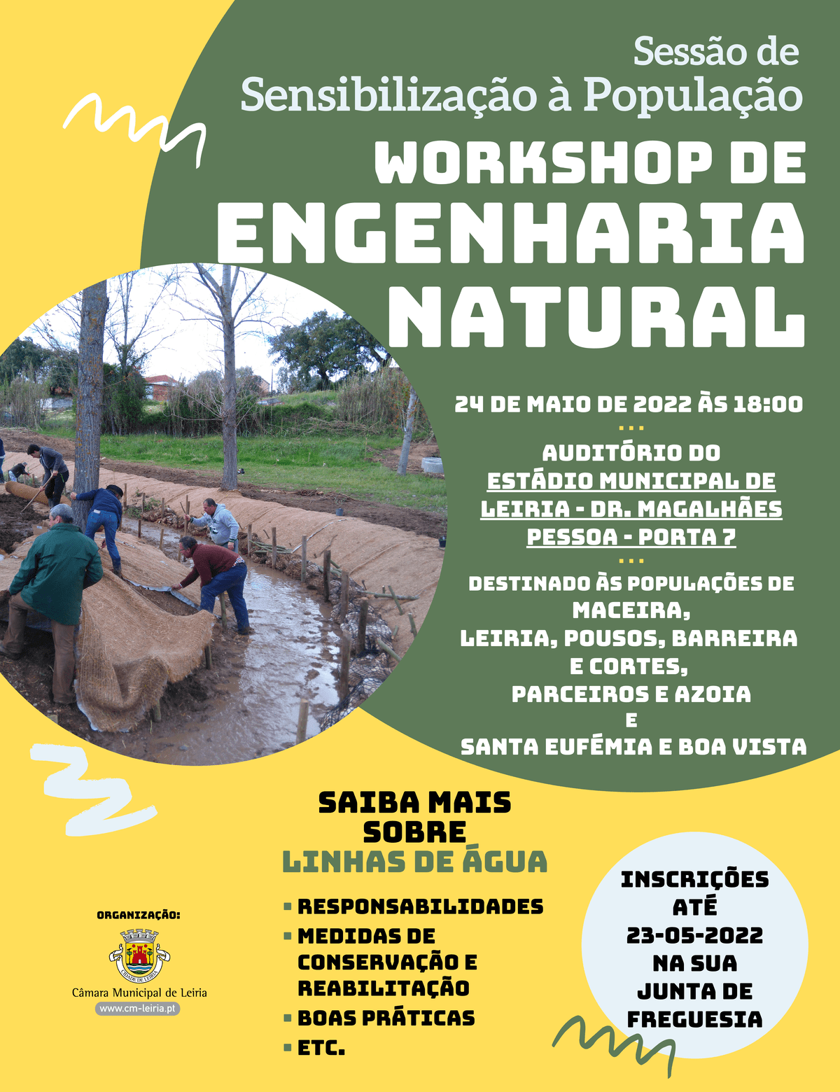O Município de Leiria está a promover a realização de 5 Sessões de Sensibilização à População, distribuídas pelas freguesias do concelho, uma iniciativa no âmbito do Plano Estratégico de Reabilitação de Linhas de Água e do Acompanhamento de intervenções em espaço Fluvial.
