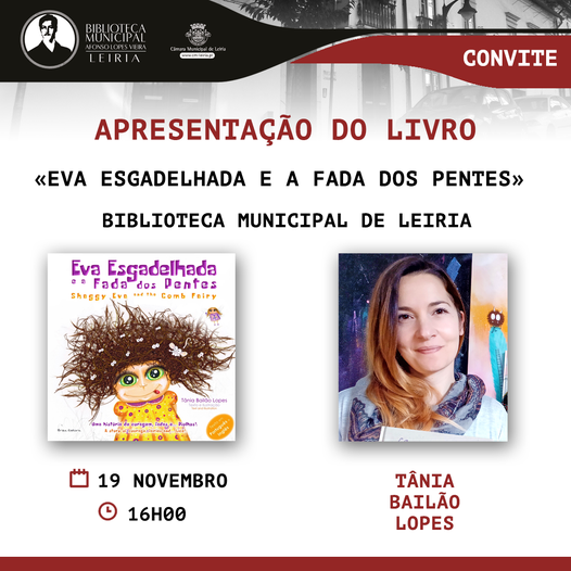 O livro "Eva Esgadelhada e a Fada dos Pentes", da escritora e ilustradora Tânia Bailão Lopes, será apresentado pela autora, no próximo sábado, dia 19 de novembro, às 16 horas, na Biblioteca Municipal Afonso Lopes Vieira, em Leiria.