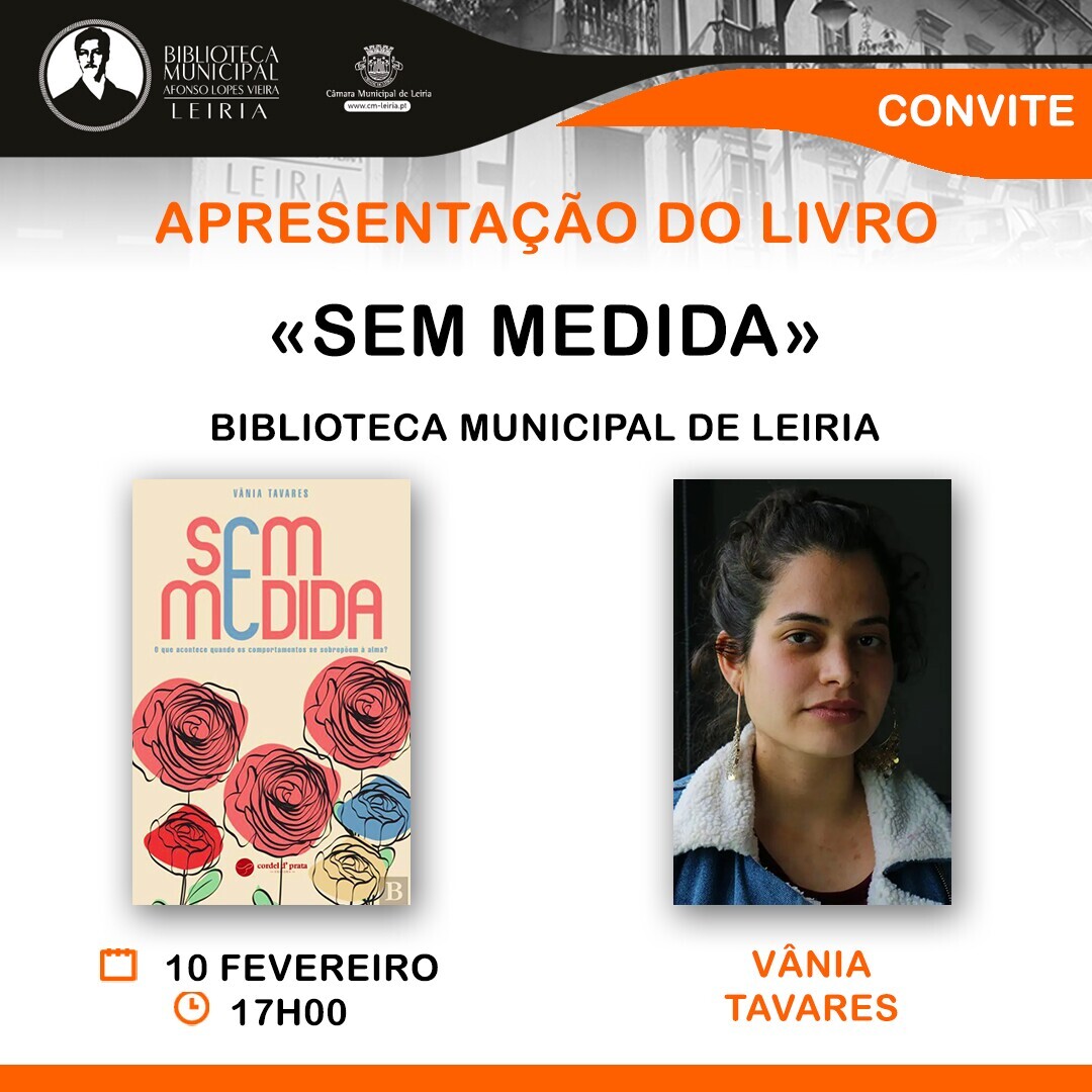 O livro “Sem Medida”, de Vânia Tavares, vai ser apresentado pela autora, no dia 10 de fevereiro, às 17 horas, na Biblioteca Municipal Afonso Lopes Vieira.
