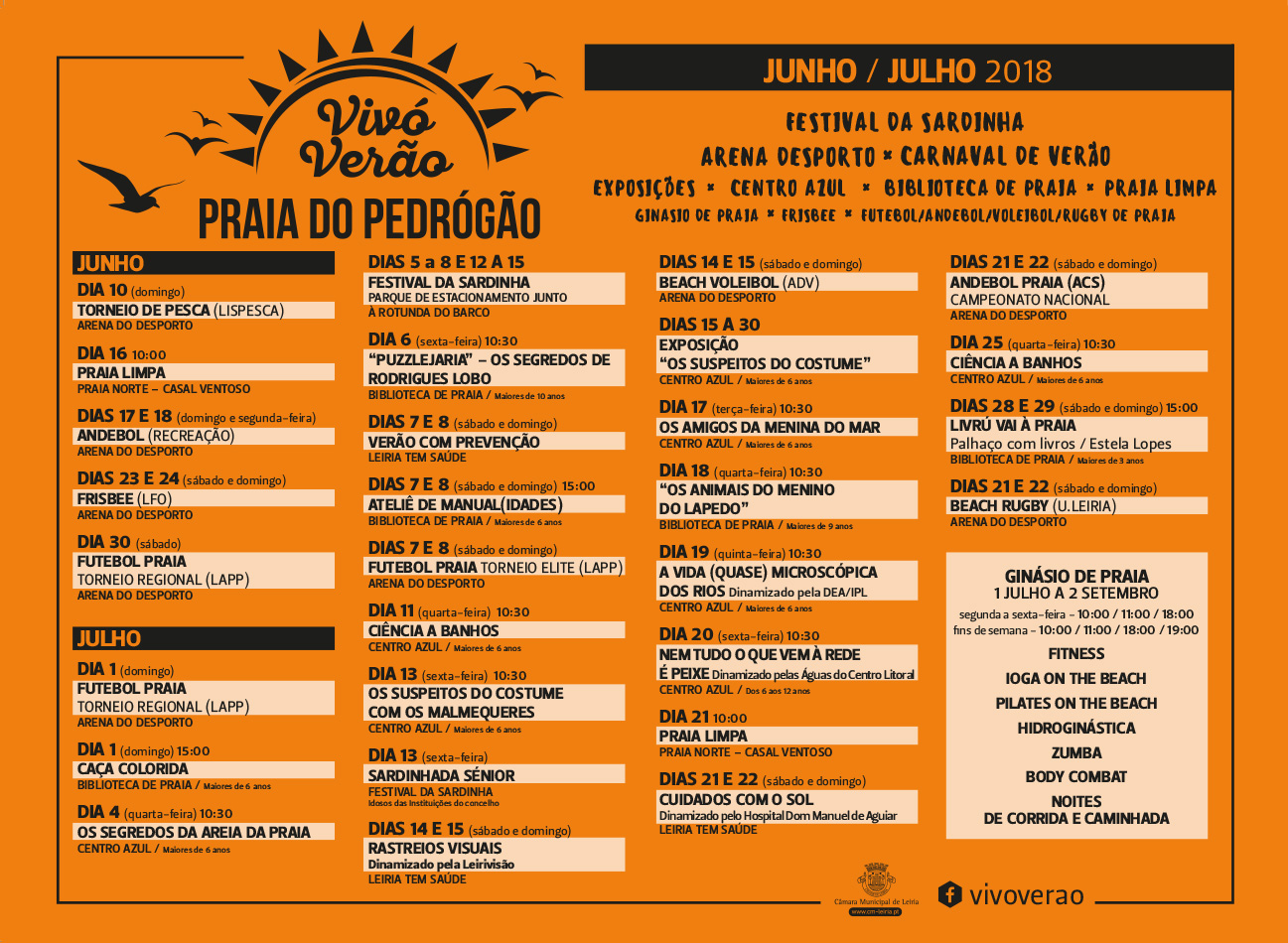 Uma autêntica onda de atividades vai inundar a praia do Pedrógão, Leiria, durante a época balnear. Biblioteca de praia, sensibilização ambiental, Festival da Sardinha, Carnaval de Verão, arena do desporto, prevenção na área da saúde, gastronomia e concertos são alguns dos destaques de um programa que promete afirmar esta praia com um dos destinos mais atrativos da região este Verão.