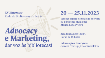 Advocacy e Marketing - dar voz às bibliotecas, é a temática deste Encontro com o qual se pretende debater e destacar estratégias e ações para multiplicar o impacto e ampliar o alcance dos benefícios das Bibliotecas nas comunidades.