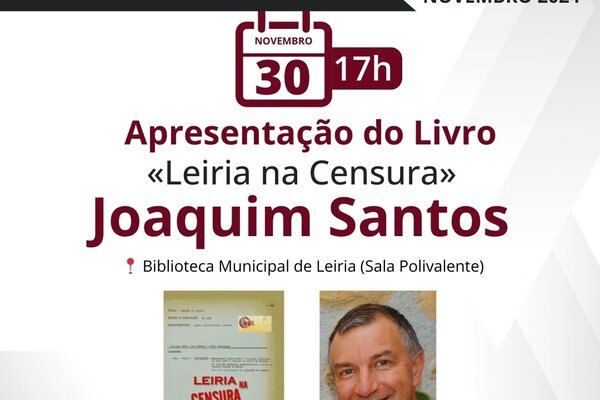 O escritor e jornalista Joaquim Santos vai apresentar o seu novo livro, Leiria na Censura, no dia 30 de novembro, às 17h00, na ...19 Nov 2024 -