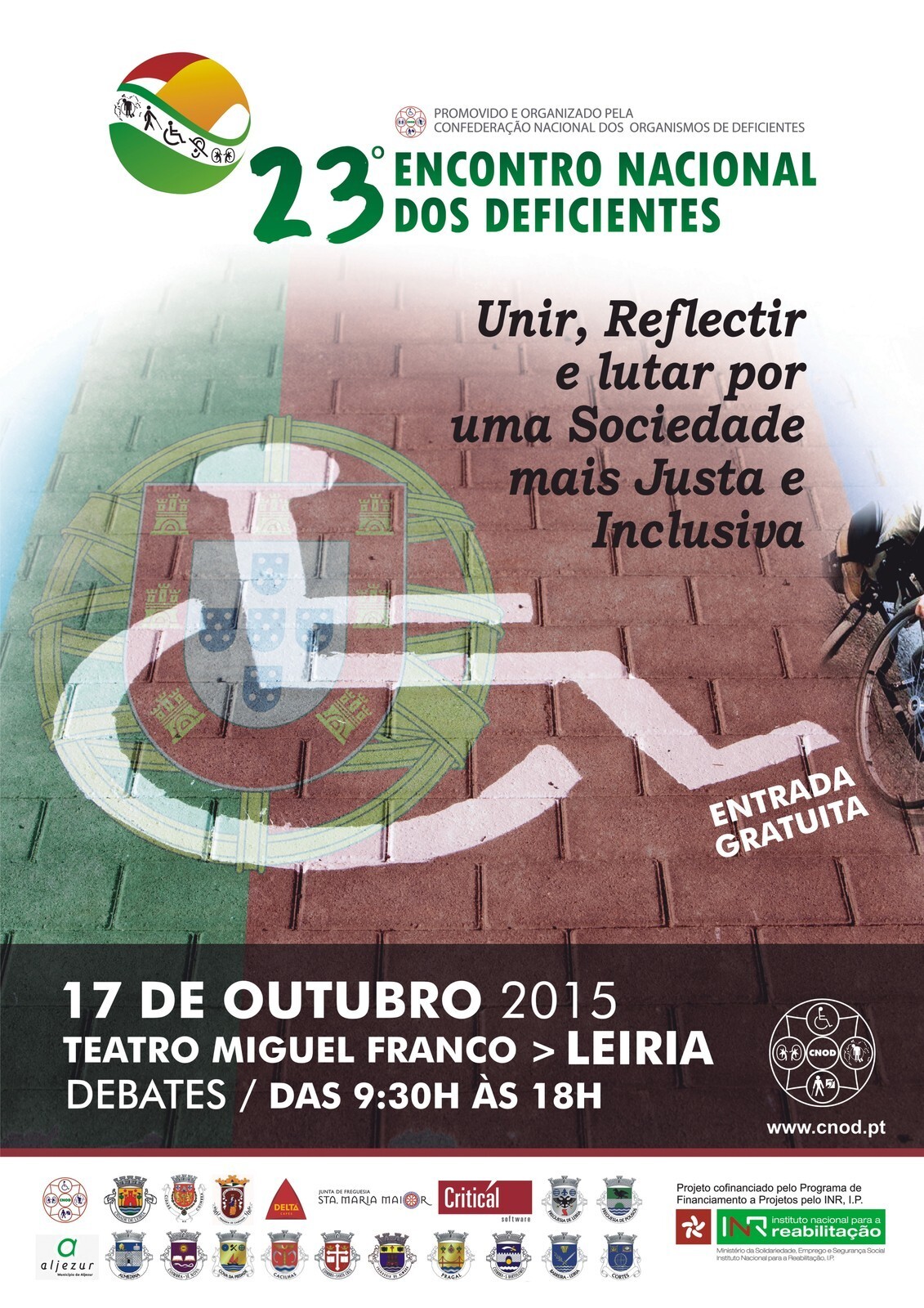 A Confederação Nacional dos Organismos de Deficientes (CNOD) realiza o 23º Encontro Nacional dos Deficientes no dia 17 de Outubro no Teatro Miguel Franco, em Leiria.