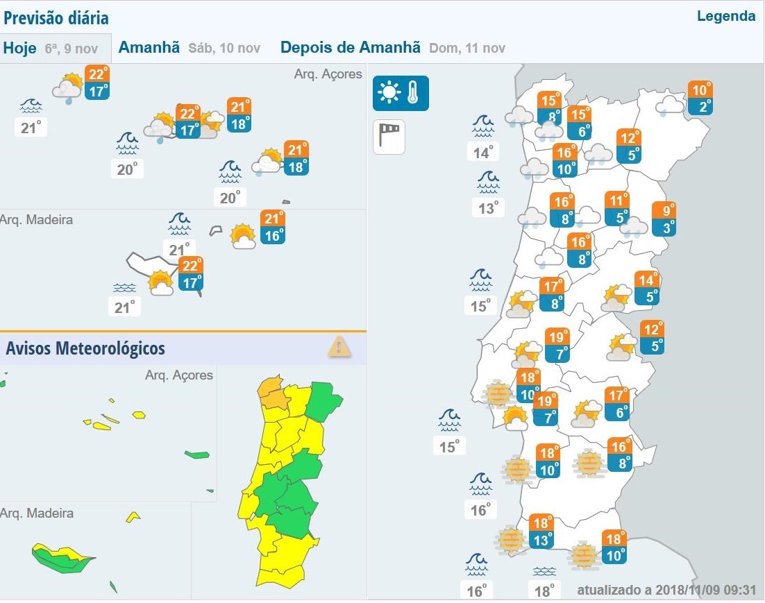 O Comando Nacional de Operações de Socorro (CNOS) da Autoridade Nacional de Proteção Civil (ANPC) informa que, de acordo com a informação meteorológica apurada, prevê-se para as próximas horas um agravamento das condições meteorológicas, com um período mais crítico entre as 12h00 do dia 09 de novembro e as 06h00 do dia 10 de novembro.
