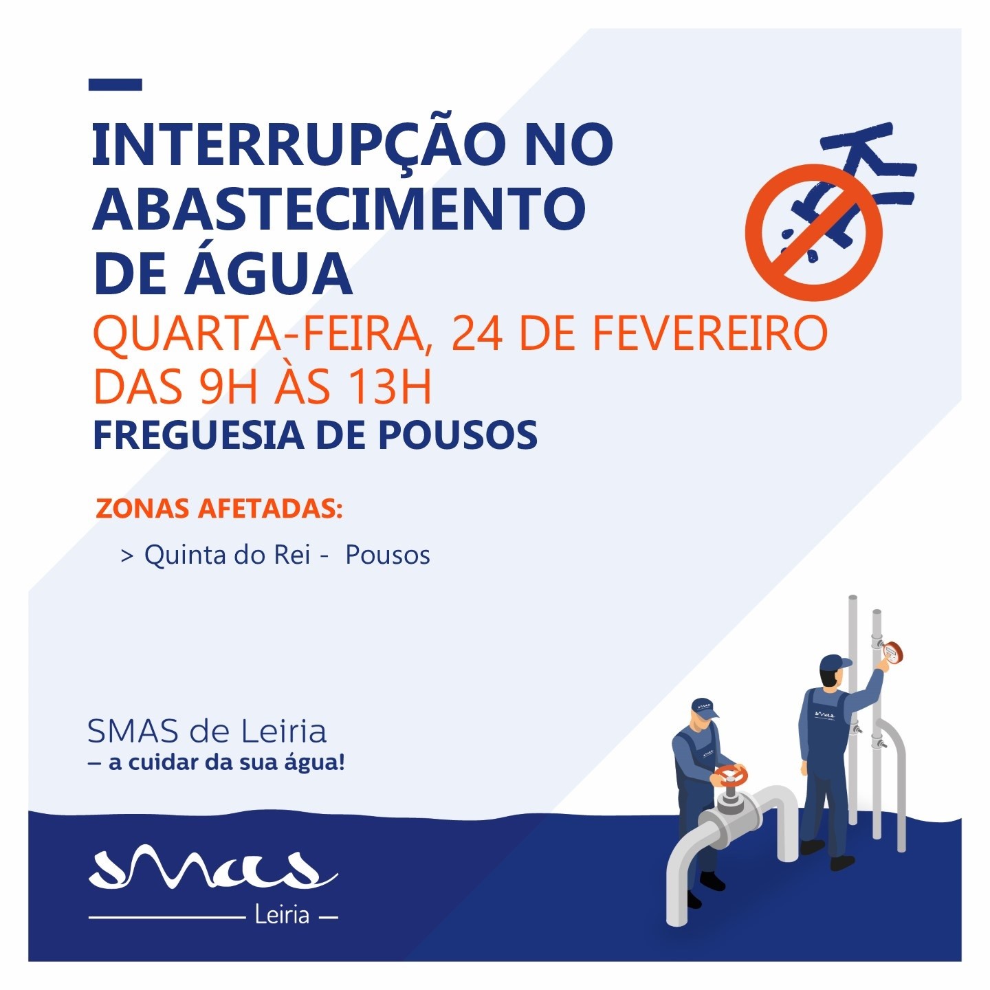 Estamos conscientes que vivemos uma situação exigente, mas o trabalho dos SMAS de Leiria não pode parar, continuando a sua missão de levar água de qualidade e em quantidade, a casa de todos.