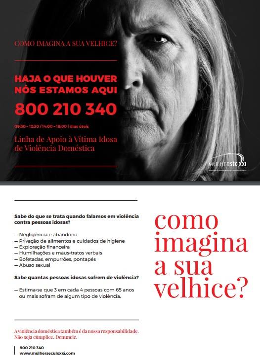 Desde 2015 que a Mulher Século XXI criou uma resposta especializada para vítimas idosas de violência doméstica através da implementação de uma Linha de Apoio Telefónica GRATUITA e CONFIDENCIAL - 800 210 340 - e de um Gabinete de Apoio Psicológico.