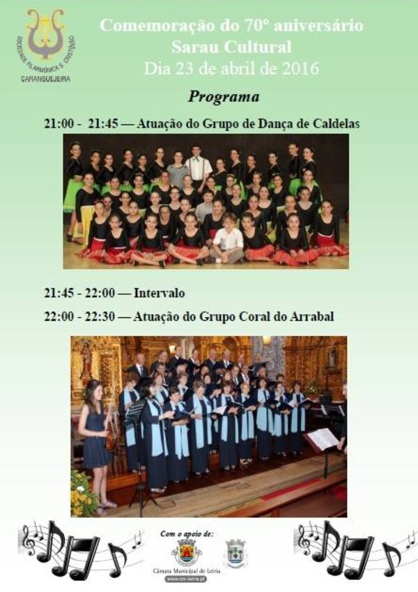 Sarau Cultural - Comemoração do 70º aniversário da Sociedade Filarmónica de S. Cristóvão da Caranguejeira